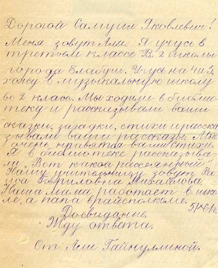 В одном из писем с фронта боец рассказывал Маршаку: «Мой пятилетний Левушка просыпается ночью и спрашивает мать: — Мам, Маршак жив? — Жив. — Какое счастье, что он спасся!»